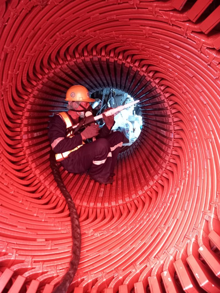 5.  船舶行業(yè):船身、入水閥、冷凝器清理,去油污、去油漆,比一般用高壓水射流清洗更干凈。